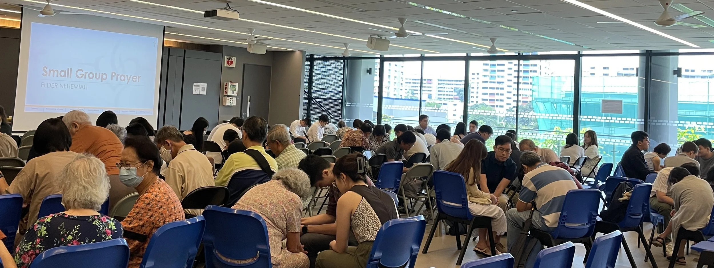 Prayerfulness. We pray in our services for gospel advance in Singapore and beyond, had a prayer walk in Macpherson. Our prayer meeting every last Sunday of the month has seen better attendance and encourage more to join us.