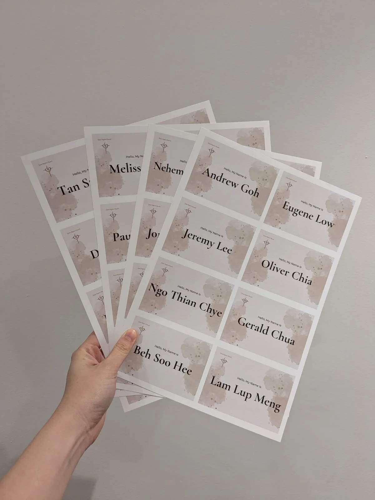 One task I enjoyed was designing, ordering, and printing out nametags for our members. Wearing these navy blue (or otherwise brightly coloured) nametags on Sundays is an example of a small cost we take upon ourselves for the sake of knowing and being known by others in the congregation. It reminds me to be intentional in introducing myself to others, especially older members whom I have not met, and serves as a quick, visual reminder for older saints or those who might need more help in matching names with faces—a wordless act of love! May we humbly lay down our preferences, self-consciousness or biases, and joyfully put others’ needs above our own, moving towards and initiating conversations with fellow members of our body, just as the Shepherd knows each of us by name.