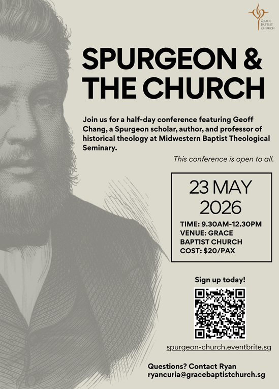This May, we have the privilege of hosting Dr. Geoff Chang—a leading Spurgeon scholar and professor of church history at Midwestern Baptist Theological Seminary—for a two-day Spurgeon Conference in partnership with the Singapore Baptist Convention.