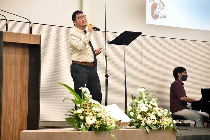 Good Friday services in GBC are typically sombre events with mournful overtones as the church gathers to remember the death of Jesus on the cross. Toshi opened the service by singing the song "Gethsemane", with Aaron playing the piano and Esther on the violin.